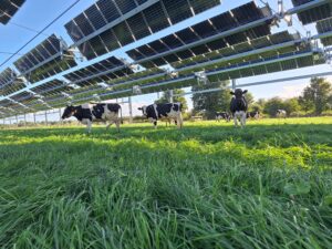 L’agrivoltaïsme, on connaît. L’autoconsommation collective aussi. L’alliance des deux, un peu moins, car elle commence tout juste à se développer sur le territoire. TSE, entreprise française, a lancé sa première centrale agrivoltaïque en autoconsommation collective (ACC) à Souleuvre-en-Bocage (Calvados). Sous cette « canopée agricole », un élevage de vaches laitières Prim’Holstein. Avec une puissance installée de 2,9 MW sur 3,4 hectares, l’installation produira environ 3 700 MWh d’électricité renouvelable chaque année. Mise en service en janvier 2024, elle a été ouverte à l’autoconsommation il y a quelques mois. « La valeur de la centrale est ainsi partagée avec les entreprises du coin et les riverains, dans l’idée de l’intégrer le plus possible à son territoire », développe Bénédicte Vignoboul, directrice Valorisation de TSE.